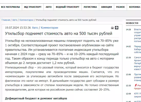 Утильсбор поднимет стоимость авто на 500 тысяч рублей